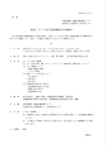 主に丹後地域の機械金属加工企業を対象に、板金・プレス加工に関する基礎知識を学ぶ講習会を開催します。