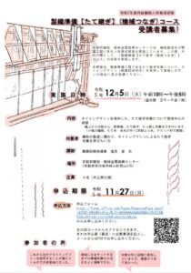 京都府織物・機械金属振興センターでは、織物製造及び関連工程に係る人材育成研修を実施しています。この度、その一環として、「製織準備【たて継ぎ(機械つなぎ)】コース」の研修を実施します。