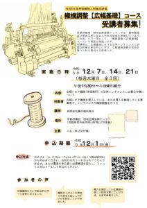 お知らせ一覧をみる>丹後織物人材育成研修「織機調整【広幅基礎】コース」のご案内