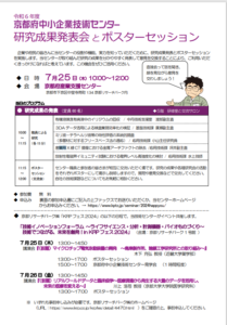 企業や府民の皆さんに当センターの役割や機能、実力を知っていただくために、研究成果発表会とポスターセッションを実施します。中小企業技術センターが取り組んだ研究の成果を分かりやすく発表して意見を交換することにより、ご利用いただくきっかけになればと考えています。この機会をぜひご活用ください。
