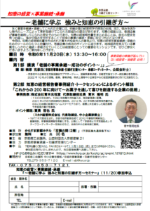「老舗に学ぶ 強みと知恵の引継ぎ方セミナー」を開催します!