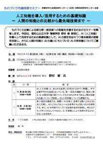 ものづくり先端技術セミナー「人工知能を導入/活用するための基礎知識」を開催します!(人間の知能との比較から最先端技術まで)