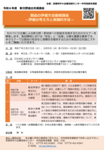 お知らせ一覧をみる>製品の評価方法基礎講座ー評価の考え方と実践的手法ーを開催します!(新分野進出支援講座)